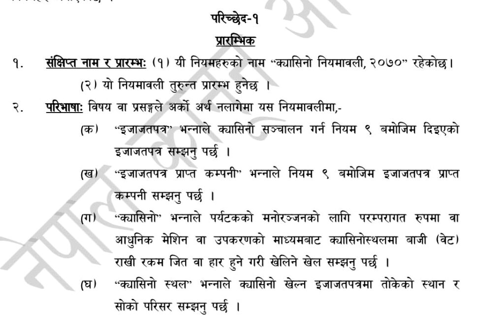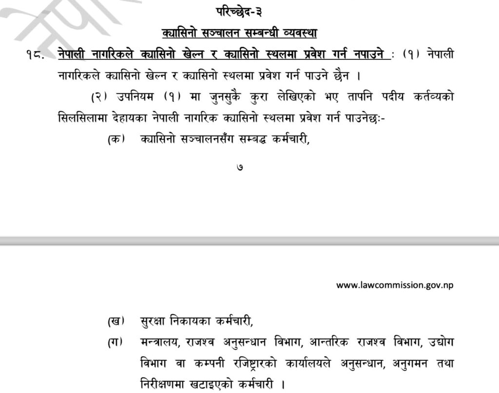 पर्यटन नियमावली, २०७० परिच्छेद–१ प्रारम्भिक २ (ग) अनुसार आधुनिक मेसिन वा उपकरणको माध्यमबाट क्यासिनोस्थलमा बाजी (बेट) राखी रकम जित वा हार हुने गरी खेलिने खेल सम्झनु पर्छ उल्लेख भएको अर्थात मिनि क्यासिनोले लाइभ गेमिंग (तास कार्ड पत्ती)खेलाउन पाँदैन । तर नेपालगन्ज होटल कल्पुत्रमा एस एन ब्लु मिनि क्यासिनोले कार्ड पत्ती लाइभ गेमिंग खेलाएको टिकटाकमा भिडियो सार्वजनिक गरी बाँके सिडियो र बाँके प्रहरी प्रमुखले खुला चुनौति दिंदा पनि काज सरुवा भएका बाँके सिडियो र बाँके प्रहरी एसपीले कारवाहीको प्रक्रिया अगाडी सकेका छैनन् ।