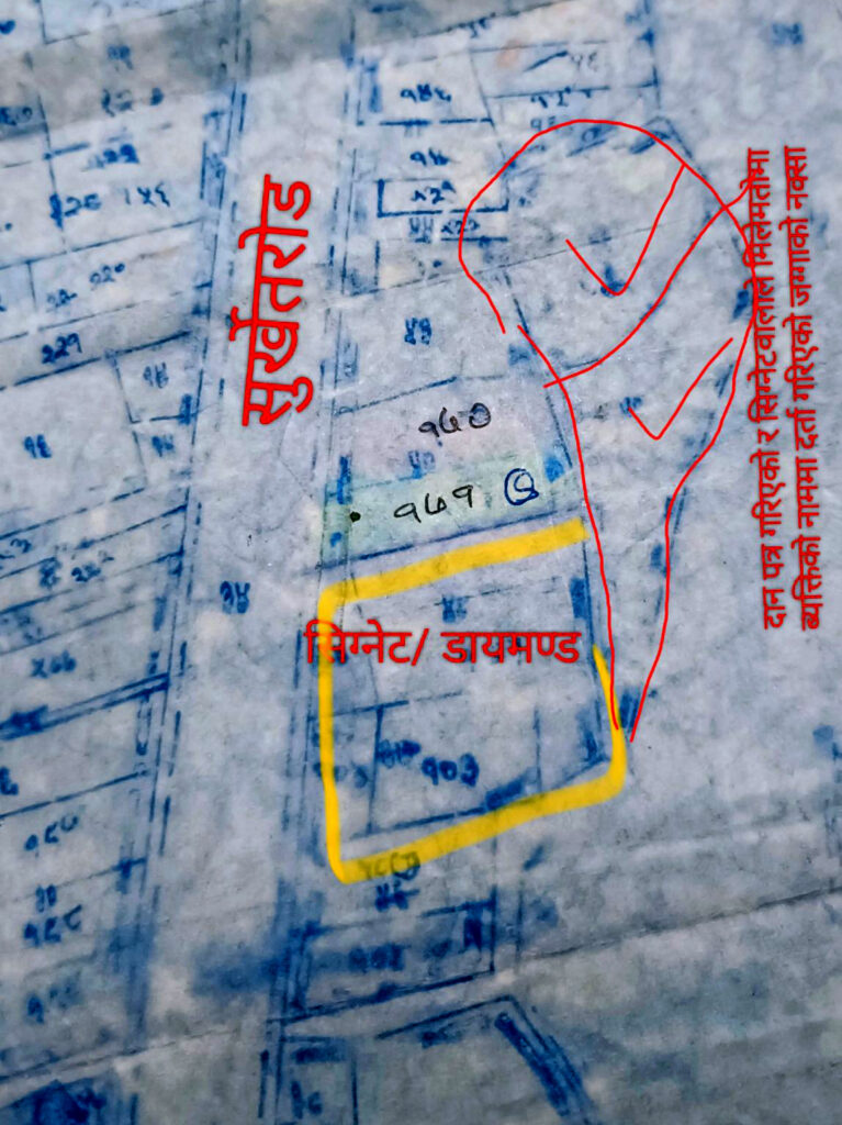 नापी कार्यालयबाट प्राप्त दान गरिदिएको जग्गाको नक्सा