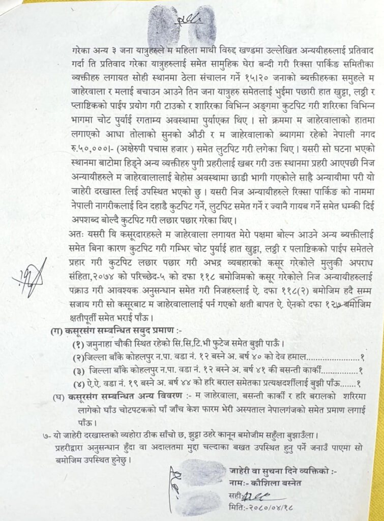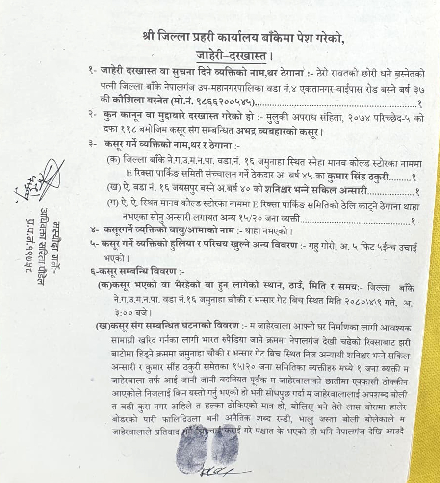 नेपालगन्ज उपमहानगरपालिकाले दुई वर्षको सम्झौता गरी स्नेहा मानव कोल्ड स्टोरको नाममा ठेक्का दिएको थियो भने संचालक कुमार सिंह ठकुरी र सकिल अन्सारी लगायत १५–२० जनाको समूहले २०८० साउन ९ गते करिब ३ बजे ३७ वर्षकी महिला कौशिला बस्नेतमाथि कुटपिट र लुटपाट गरेको बिषयमा उजुरी पर्दा ती व्यक्तिहरुको नाममा पक्राउ पुर्जी जारी भई फरार समेत भएका थिए ।