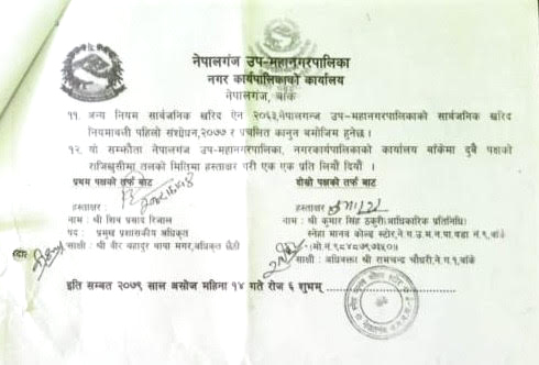 नेपालगन्ज उपमहानगरपालिकाका मेयर प्रशान्त बिष्टको ठाडो आदेश –‘असोज १४ गते सम्झौता भएकोमा १४ गतेसम्म पार्किंग शुल्क उठाउन दिनु’ जारी भएपछि स्थानिय प्रहरी प्रशासन भने मौन रहेको देखिएको छ ।